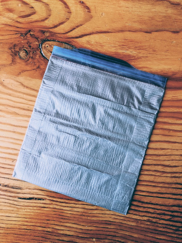 Whether you’re packing out tampons or soiled toilet paper, this little trick is a must. Simply cover a ziploc bag in duct tape, throw in your pack, and use it to pack out the icky things. The duct tape not only reinforces the bag so you’re less likely to have any unfortunate breaks, but it also makes things a little more discreet so you and your campmates don’t have to see what’s inside. Another option is to cover a water bottle with duct tape or spray the interior with spray paint, just make sure the mouth of the bottle is big enough that you can easily toss things inside.